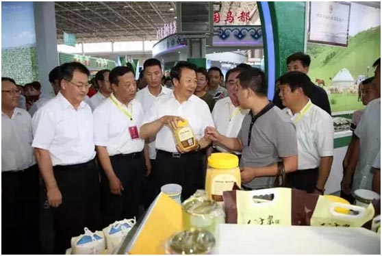 隨后,自治區(qū)黨委書記王君,自治區(qū)政協(xié)主席任亞平,自治區(qū)黨委常委、呼和浩特市委書記那順孟和,自治區(qū)副主席王玉明等領導在市委書記何永林,市委副書記、市長段志強的陪同下,參觀了12個盟市和部分企業(yè)的展區(qū)。在參觀過程中,王君書記強調(diào)我們要積極適應和引領經(jīng)濟發(fā)展新常態(tài),毫不放松地抓好農(nóng)牧業(yè)生產(chǎn),打好產(chǎn)品優(yōu)勢牌,走好企業(yè)特色路,不斷培育產(chǎn)業(yè)新的增長點。并要抓住互聯(lián)網(wǎng)時代信息與各類產(chǎn)業(yè)融合發(fā)展的新機遇,充分利用好互聯(lián)網(wǎng)+的新模式,為我區(qū)綠色農(nóng)畜產(chǎn)品生產(chǎn)加工輸出插上信息化的翅膀。