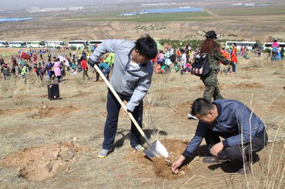 12日上午,來自全國(guó)15個(gè)省市自治區(qū)的3000多名代表,齊聚呼和浩特市和林縣經(jīng)濟(jì)開發(fā)區(qū)臺(tái)格斗村附近的山上種植沙棘,打造宇航人中國(guó)沙棘第一村。沙棘被我國(guó)政府列為治理黃土高原水土流失和西部荒漠化的先鋒樹種,宇航人在全國(guó)打造沙棘第一村,不僅改造修復(fù)了生態(tài),而且可以有效幫助農(nóng)民脫貧致富,既有了綠水青山,又有了金山銀山。