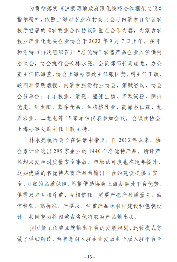 13  內(nèi)蒙古農(nóng)牧業(yè)產(chǎn)業(yè)化龍頭企業(yè)協(xié)會(huì)...