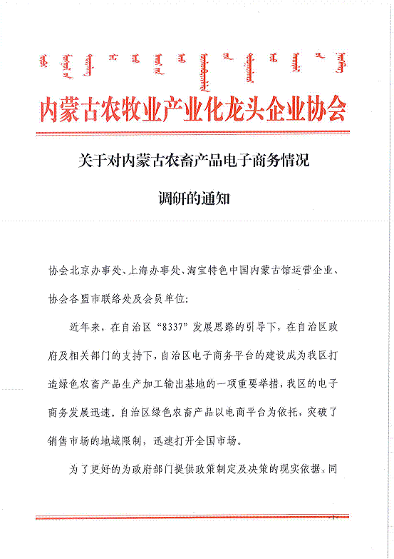 關(guān)于對內(nèi)蒙古農(nóng)畜產(chǎn)品電子商務(wù)情況調(diào)研的通知
