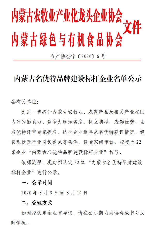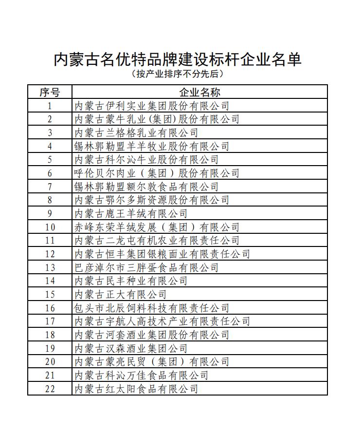 內蒙古名優(yōu)特品牌建設標桿企業(yè)名單公示