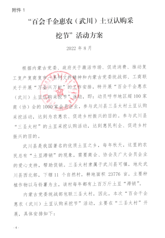 關(guān)于舉辦“百會千企惠農(nóng)(武川)土豆認(rèn)購采挖節(jié)”活動的通知
