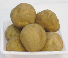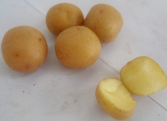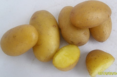 FAVORITA(費(fèi)烏瑞它)1981年由國(guó)家農(nóng)業(yè)部種子局從荷蘭引入,山東省農(nóng)業(yè)科學(xué)院蔬菜花卉所引入山東栽培,取名“魯引1號(hào)”,1989年天津市農(nóng)業(yè)科學(xué)院蔬菜花卉所引入,取名“津引8號(hào)”,又名“荷蘭薯”、“荷蘭七號(hào)”、“荷蘭15”,為我國(guó)主栽早熟品種之一,該品種出苗后60—70天即可收獲。 [特征特性]該品種早熟,株型直立,株高約60cm左右,莖桿粗壯,分枝少,葉片肥大,葉緣波狀,花淡紫色;結(jié)薯集中,薯塊膨大迅速,長(zhǎng)橢圓形,芽眼淺,黃皮黃肉,表皮光滑,食味好,適合加工和出口創(chuàng)匯,在香港及東南亞各國(guó)極為暢銷;抗馬鈴薯Y病毒,對(duì)A病毒免疫;淀粉12.4%—14%,還原糖0.03%。植株易感晚疫病。塊莖感晚疫病和環(huán)腐病。輕感青枯病、退化快。產(chǎn)量高,畝產(chǎn)2000kg,高產(chǎn)可達(dá)3000kg以上。 [適宜范圍]該品種適宜性較廣,黑龍、遼寧、內(nèi)蒙古、河北、北京、山東、江蘇、廣東、廣西、貴州、四川等地均有種植,是適宜出口的品種。