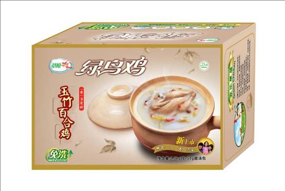 綠鳥雞的經(jīng)典口味。包裝內(nèi)附贈(zèng)草原興發(fā)特制湯包,方便快捷,味道更鮮美